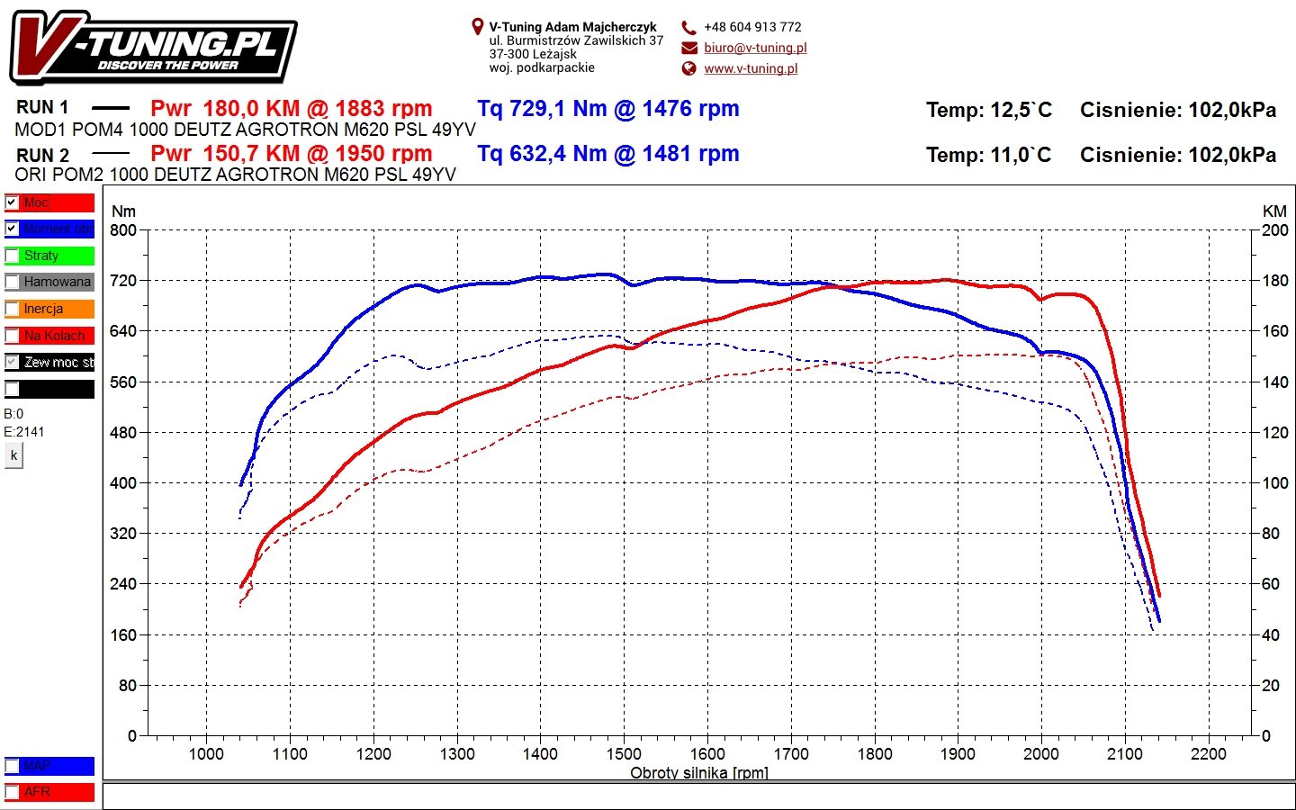 Przyrost mocy jaki uzyskaliśmy to 29KM oraz 97Nm