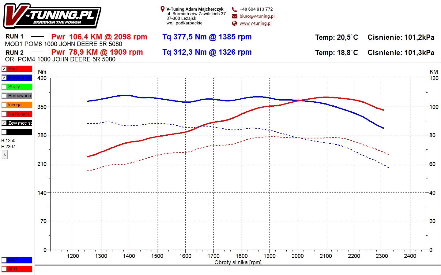 Przyrost mocy jaki uzyskaliśmy 27 KM oraz 66 Nm
