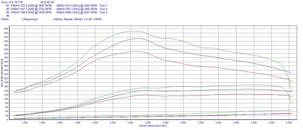 Po usunięciu filtra cząstek stałych klient zdecydował się pomiar mocy.