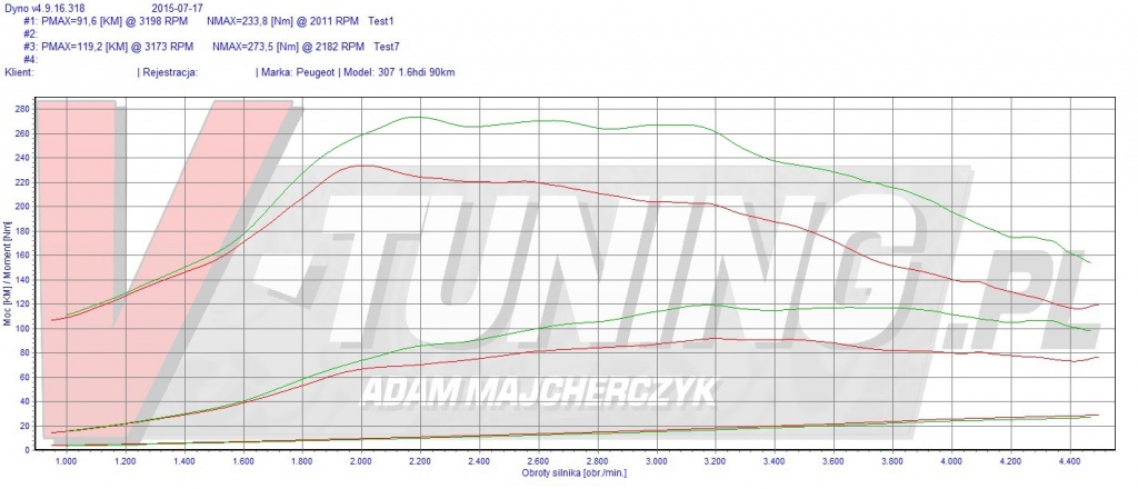 Chip Tuning Peugeot 307 1.6 HDI 90 KM +28 KM oraz 40 Nm
