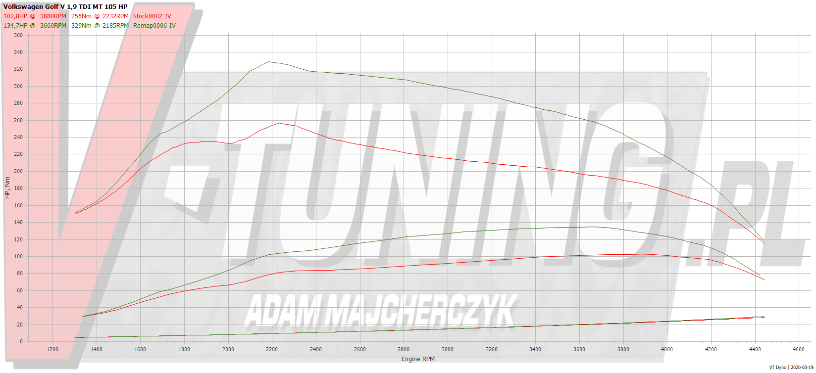 Chip Tuning VW Golf V 1.9TDI 105KM | V-Tuning Leżajsk