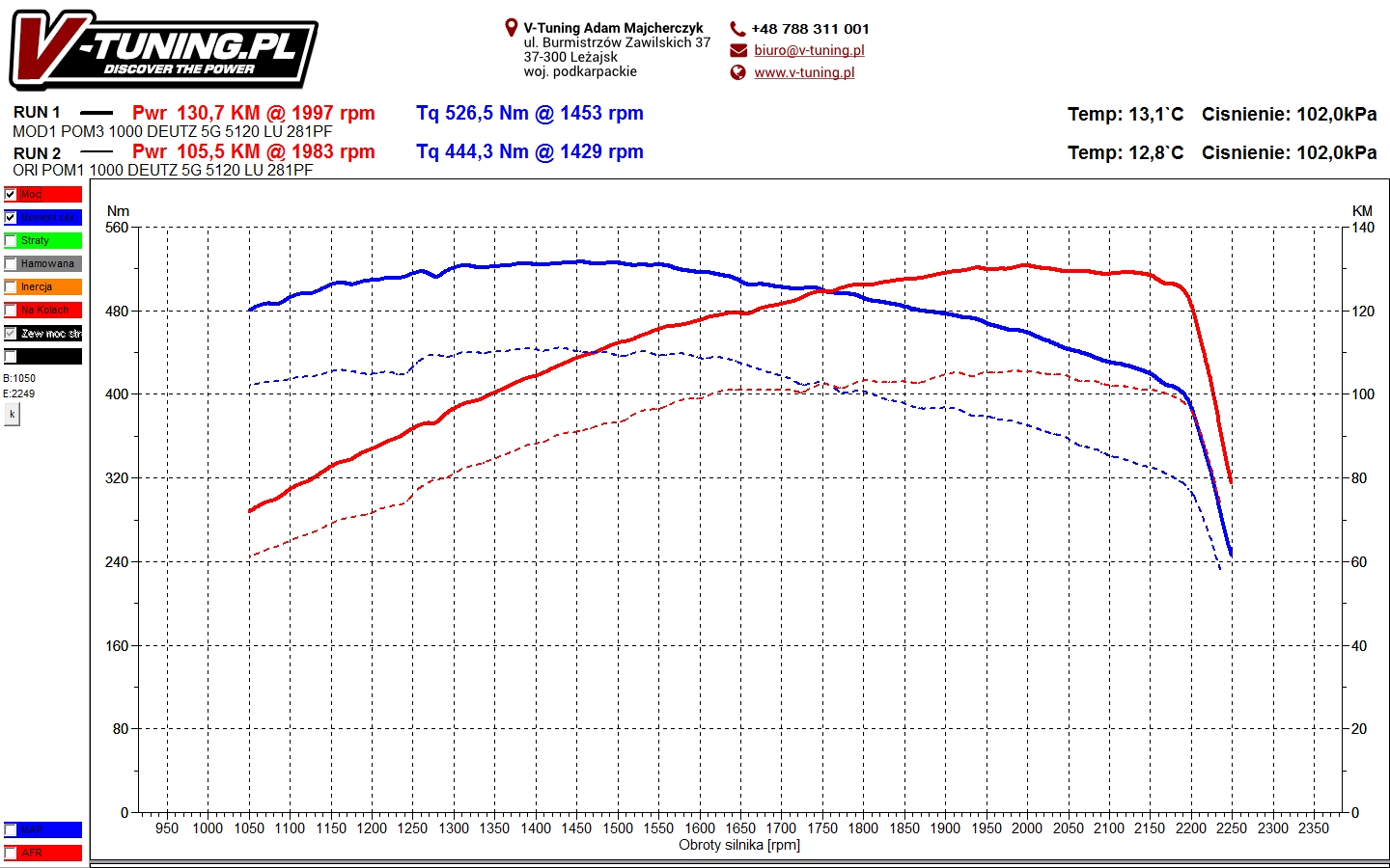 Przyrost mocy jaki uzyskaliśmy to 25KM oraz 83Nm.