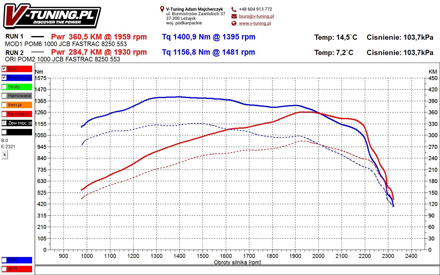 Przyrost mocy jaki uzyskaliśmy to skromne 76KM oraz 244Nm