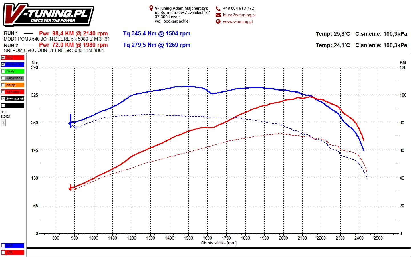 Przyrost mocy jaki uzyskaliśmy to 27KM oraz 65Nm